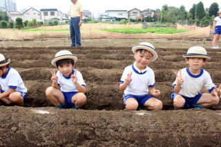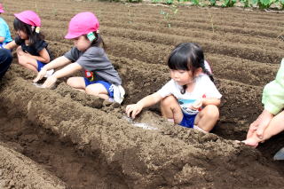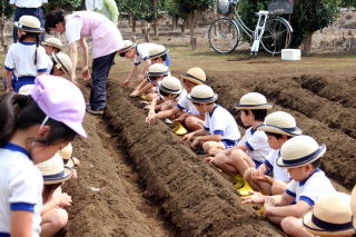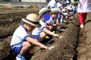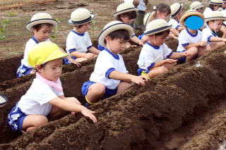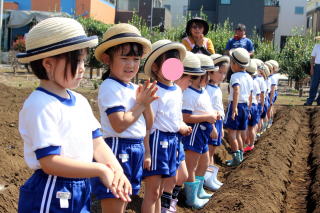 園児農園にダイコンの種まきです