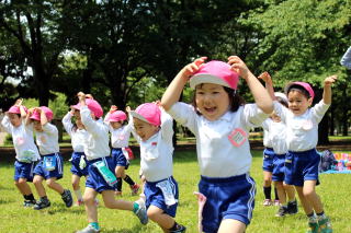 | 園外保育で記念撮影 「ハイ チーズ」 |