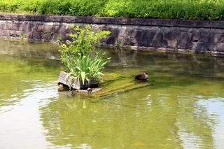 公園のお堀ではカメさんやカモさんも