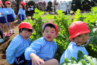 年少さんが大根の収穫体験です