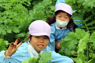 年長さんが大根の収穫体験です!