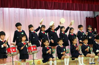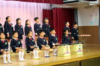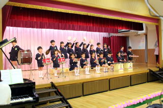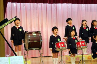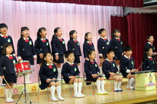 歌は「すっとわすれない」 大切に育ててくれた家族、幼稚園で一緒に笑って・泣いて過ごした友達への感謝の気持ちを込めて歌ってくれました。 |