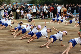 障害物競争に組体操
