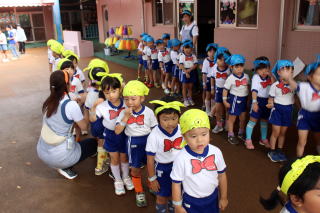 年中さんがクラスカラー旗を